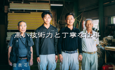 - 当店はお客様と一生のお付き合いができる畳店であることがベストだと考え、技術力の向上とお客様の立場に立った製品づくりを目指しています。