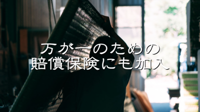 - 当社は納得のいく良質ない草を信頼できる生産者様から仕入れており、品質には、自信をもっております。万が一、お客様の大事な畳作業時に事故が起きた時に備え、賠償保険に加入しております。